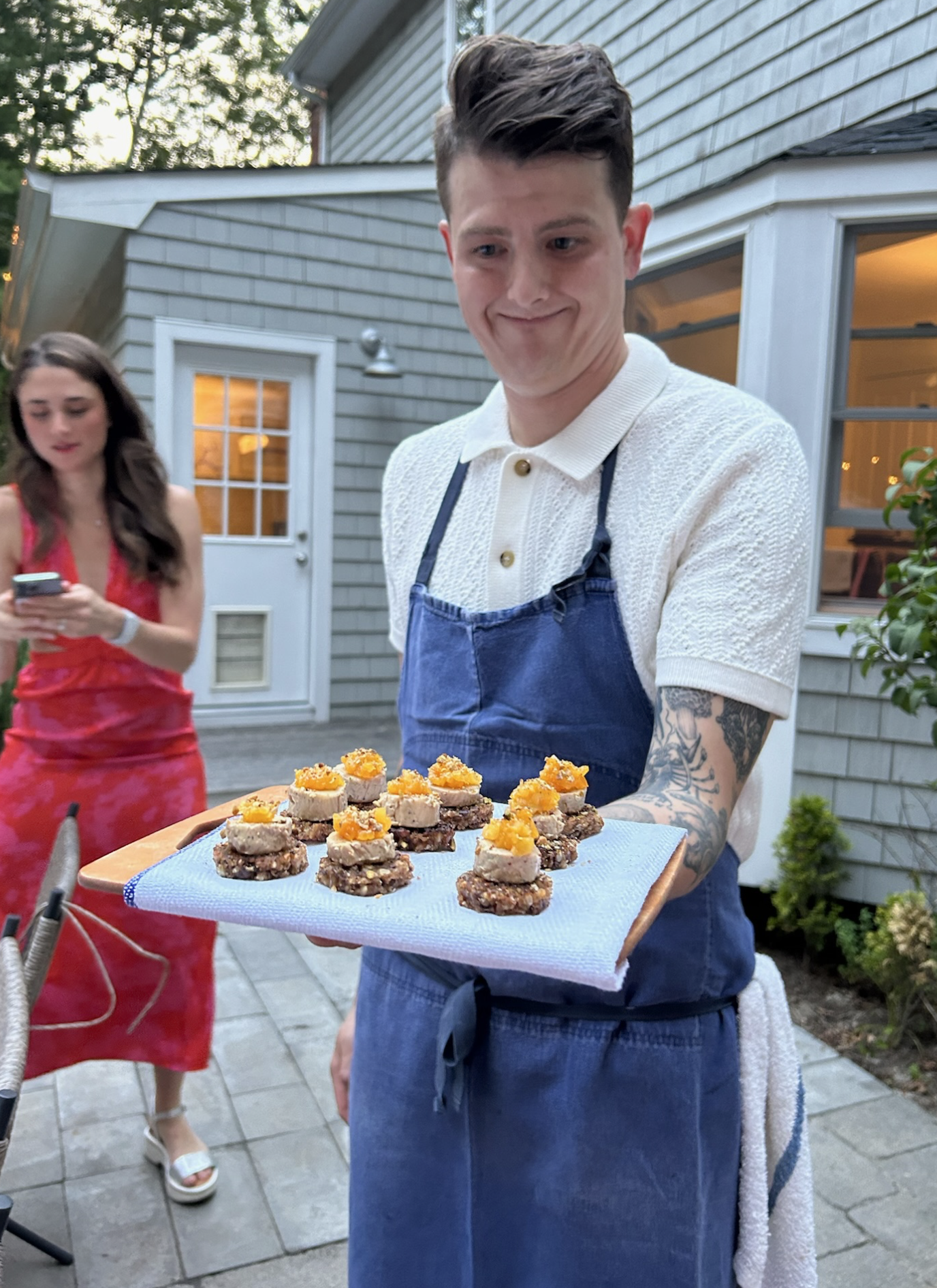 Every private dinner begins with a conversation. Andrew designs each menu from the ground up, drawing from the day’s best ingredients, the mood of the evening, and the character of the space. Whether an elegant multi‑course tasting or a relaxed family‑style service, every detail — from wine pairing to tableware — is approached with the same precision and care found in his professional kitchen.